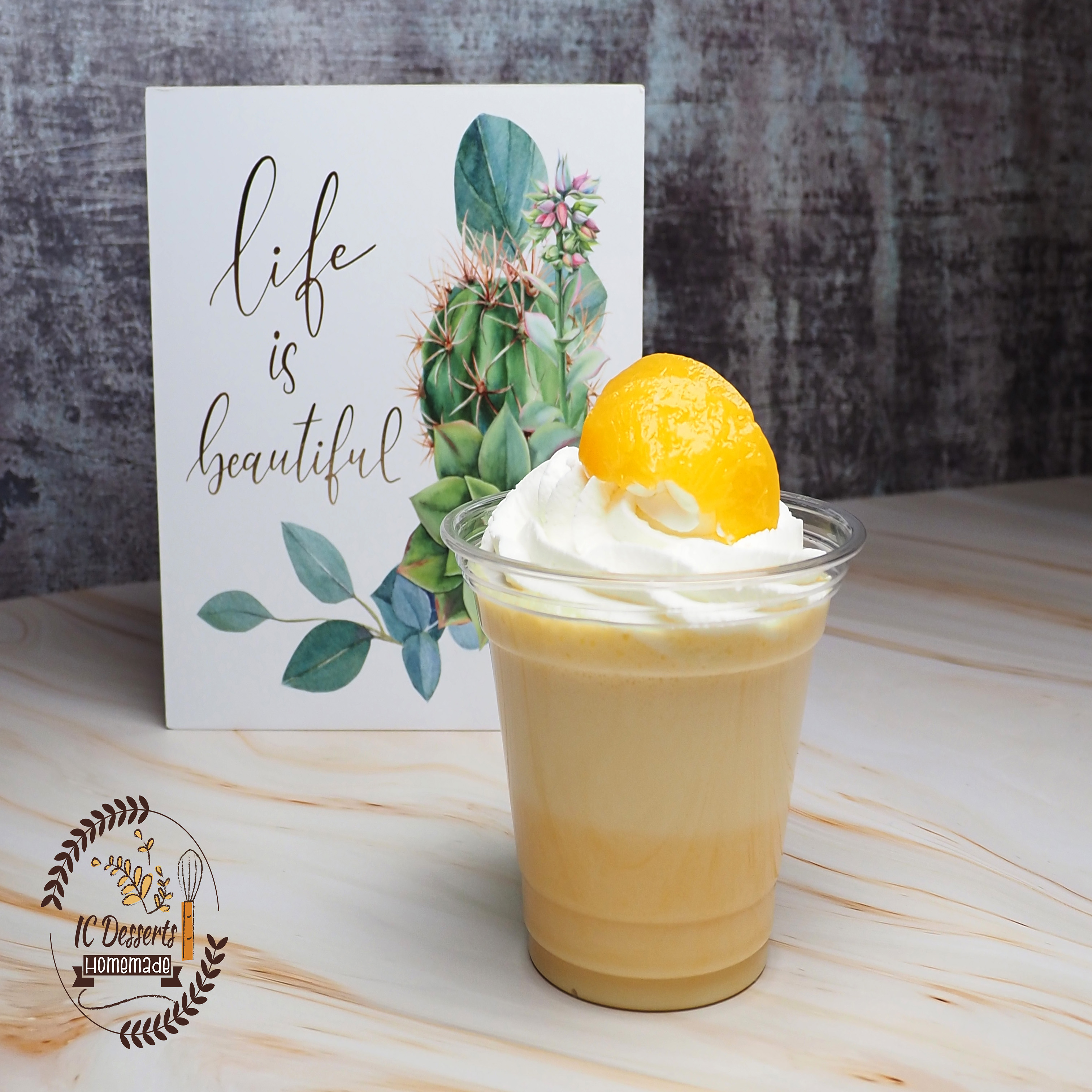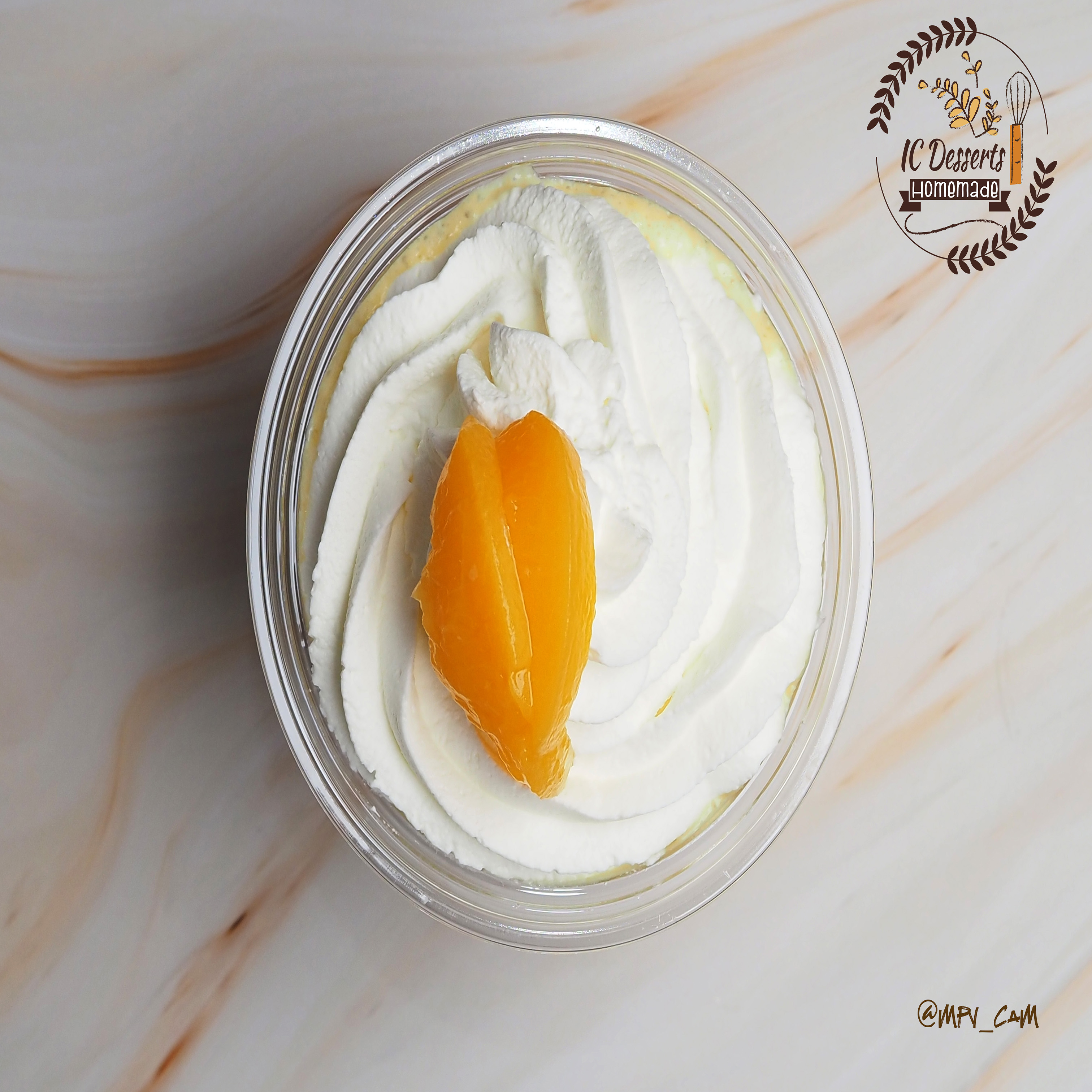 peach mousse with whipped cream on top